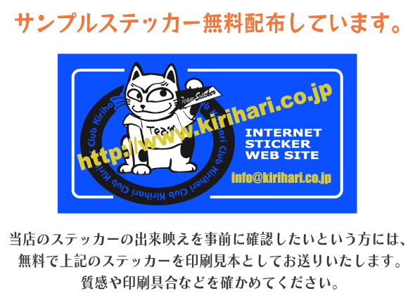 ※サンプルの種類の明記が無い場合は、プリントステッカーをお送り致します
